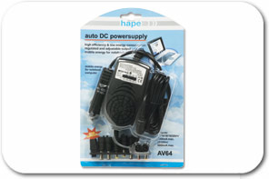 De Hapé AV-64 is een voeding die met een plug in uw auto op de aansteker aangesloten kan worden.
