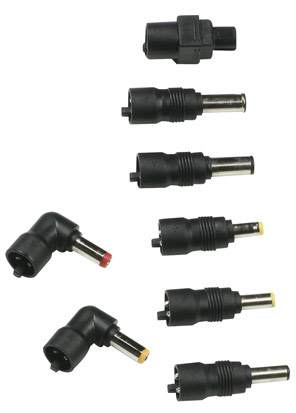Voor het gemakkelijk aansluiten op allerhande apparatuur worden acht verschillende, simpel te verwisselen, laagspannings stekkertjes meegeleverd, o.a. voor Dell notebooks.