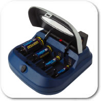 Kan tevens hoge capaciteit batterijen laden en is geschikt voor Ni-MH en Ni-CD typen batterijen.