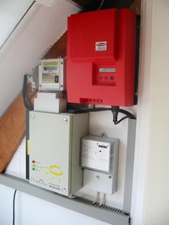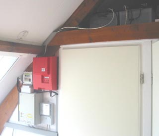 Via een omschakelunit leveren de zonnepanelen hun energie aan een 24 volt accubatterij bestaande uit 4 accu's van elk 230 Ah. Als de accu's vol zijn worden de zonnepanelen omgeschakeld en wordt de energie via de Wuerth inverter direct aan het lichtnet geleverd.