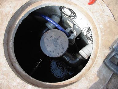 Een drijfschakelaar in de stortbak van het toilet schakelt de pomp in. De drijfschakelaar schakelt met veilige laagspanning. Een elektronische schakeling met relais schakelt de pomp in. De pomp is een standaard 230 V vijverpomp. Deze levert net zolang water tot de drijfschakelaar hem weer uitschakelt.