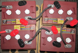 Trojan accu's 24V systeem, 4 accu's in serie De Trojan T-105 is het werkpaard in de Amerikaanse "OFF GRID" markt. Ideaal voor toepassing in vakantiehuizen, door het lage gewicht. Let op 6 volt accu, dus 2 stuks nodig voor een 12 V systeem en 4 voor een 24 V systeem.