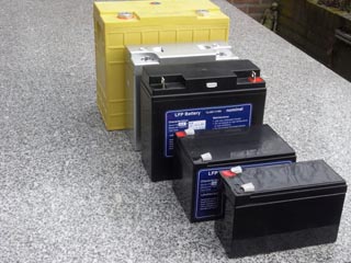 (l x b x h) [mm]Max. stroom (A) Beveiliging Prijs (incl. btw) LFP 9,5 9,5 Ah ca 1,44 kg 151 x 65 x 93 15 * PCM 175,00 LFP 12 12 Ah ca. 1,9 kg 151 x 98 x 93 24 * PCM 185,00 LFP 17 17 Ah ca. 2,8 kg 181 x 77 x 167 34 * PCM 275,00 LFP 20 20 Ah ca. 2,8 kg 181 x 77 x 167 200 geen 265,00 LFP 40 40 Ah ca. 7,2 kg 225 x 125 x 208 400 geen 395,00 *) Batterijen met PCM zijn beveiligd tegen onderspanning, overspanning en te hoge stroom