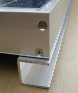 De eenvoudigste manier om een paneel op een vlakke ondergrond te monteren. Afmetingen profiel 25 x 25 mm. In de meeste Doe-het-zelf zaken te koop. Lijm en/of schroef het profiel op de ondergrond en bevestig het paneel met RVS bouten en moeren of met parkers op de bovenzijde van het profiel.